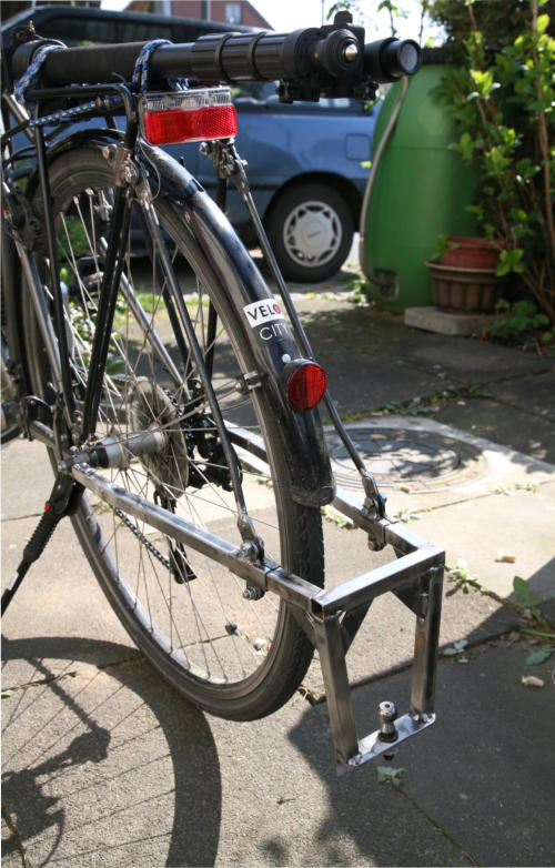des Zugteils aufnimmt. Zwei Stäbe, die mit den Stützstreben des vorhandenen Gepäck-