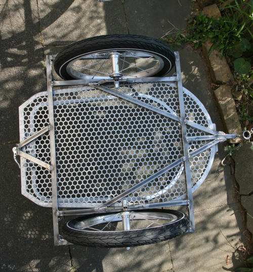 Der Hänger mit Rädern aber ohne Korb ca. 6,5 kg