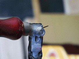 Ein Loch soll gesägt werden, dazu muss ein Ende des Sägeblattes ausgespannt werden.